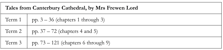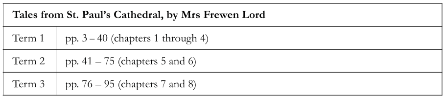In addition to the main spine, students in IA would each term read a few chapters from a book series by Mrs. Frewen Lord, either Tales from Westminster Abbey, Tales from Canterbury Cathedral, or Tales from St. Paul’s Cathedral.