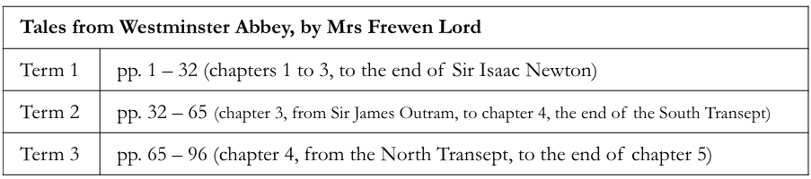 These relatively short historical accounts would walk a student through the Cathedral or Abbey, describing the monuments they come across, and relating historical events as they occurred either within the building itself or to the figures connected with the location in question. They would read one of these ‘Tales’ per school year so that only two out of the three editions would be read by a Form I student. Approximately 40 pages (based on two history lessons a week over an eleven week term, excluding time allowed for exams in the twelfth week) would be covered per term.