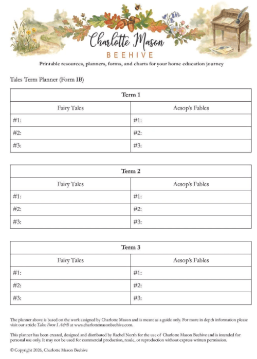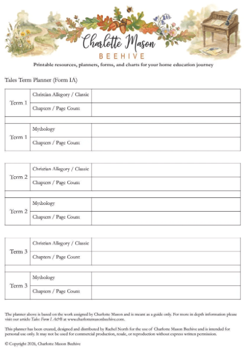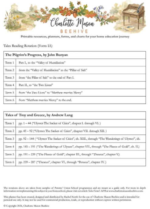 Plan your term's readings with our Tales Term Planner for Form IA. Based on the work assigned by the Parent's Union School.