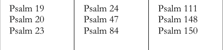 One psalm was assigned per term. (In some of the later programmes after Charlotte Mason’s death the students were given the choice of reciting EITHER a psalm OR a hymn.) This was pre-determined and specified on the programmes. In Form I there was a nine-term psalm rotation, so conveniently one each term to take us through the entirety of the form.